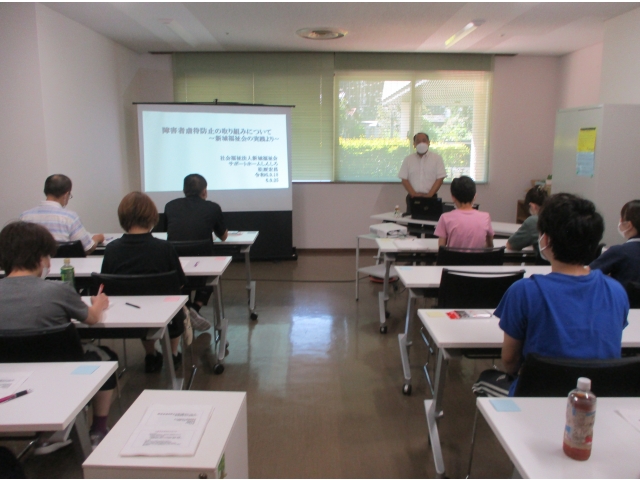障害者虐待防止について職場研修を令和6年9月18日に、社会福祉法人新城福祉会 松原様を講師としてお迎えし開催しました。 障害者虐待防止法から身体拘束等の適正化推進、障害福祉サービス等報酬改定における主な改定内容、さらにKJ法を活用したグループワークなどを実施し、虐待防止等について共通認識を持つことができました。 全職員が参加できるように、毎週実施します。次回は9月25日