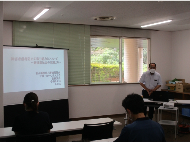 先週に引き続き、社会福祉法人新城福祉会 松原様を講師としてお迎えし、障害者虐待防止研修を行いました。 障害者虐待防止法の解説から始まり、障害者虐待の種類、通報の仕組み、虐待が認められた事業所種別等を講義していただきました。 その後はグループワークを行い、KJ法を用いた自身の支援を振り返りました。 振り返りにより、虐待防止チェックリストを活用し「虐待の芽」に早く気づくことが大切だと学びました。