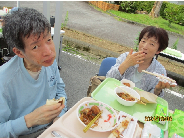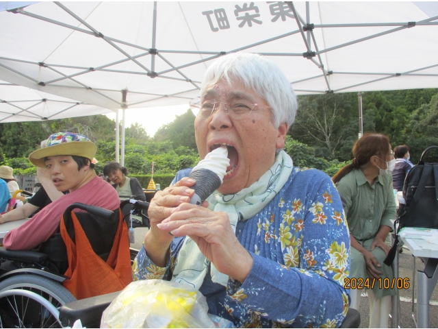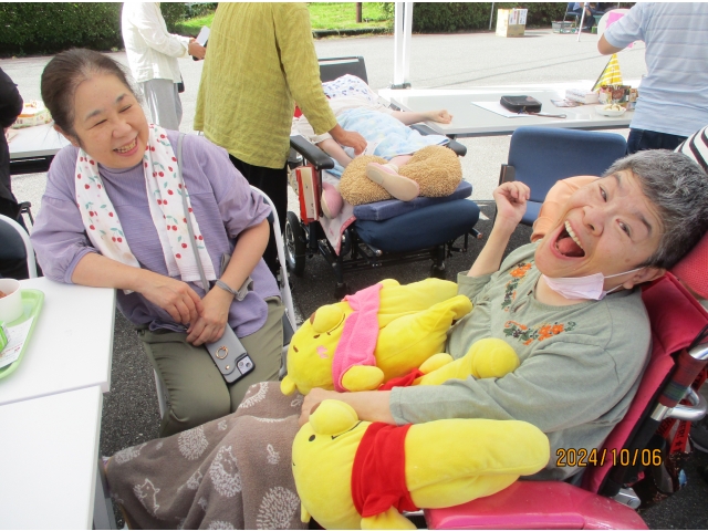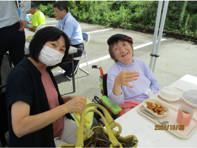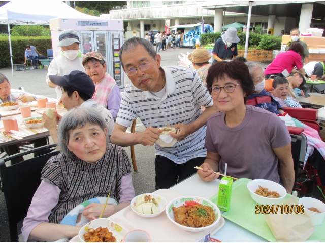 五平餅、やきそば、関谷酒造のキッチンカー、わたあめ、お菓子つかみ取りなどさまざまな食べ物、企画が用意されて、利用者のみなさんも笑顔で参加されていました!