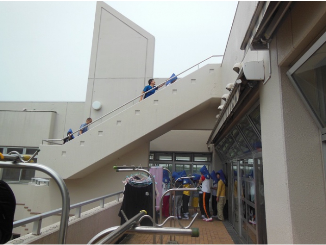 津波から避難する目的ということで、今日はいつもと異なり、屋上への避難訓練となりました。