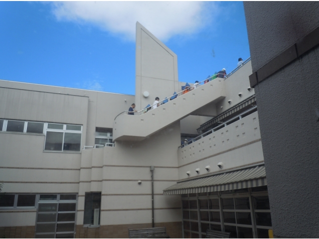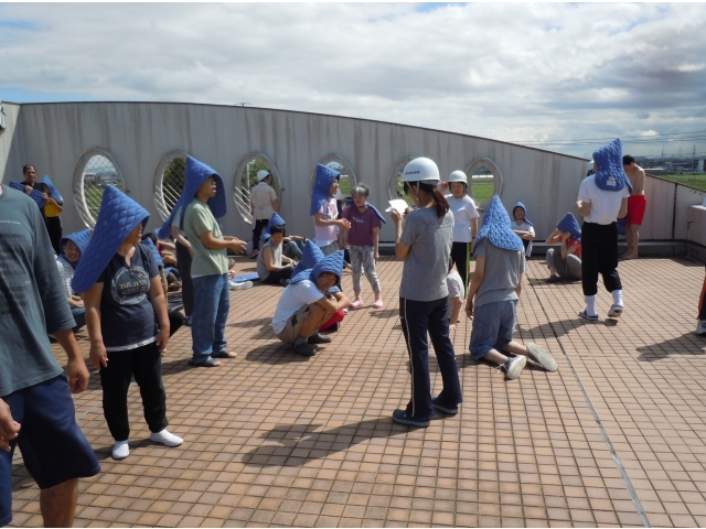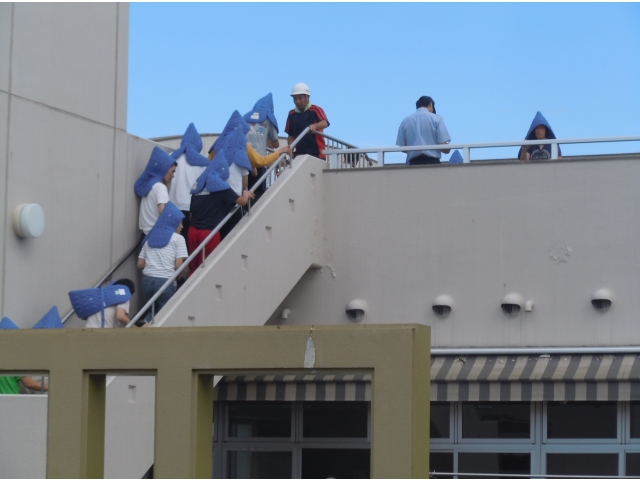 今回は、大地震と津波を想定して行い、施設の屋上へ避難をしました。