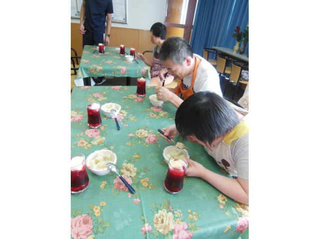 8月1日月曜日おやつ作りを行いました。本日作るのは『杏仁豆腐』です。