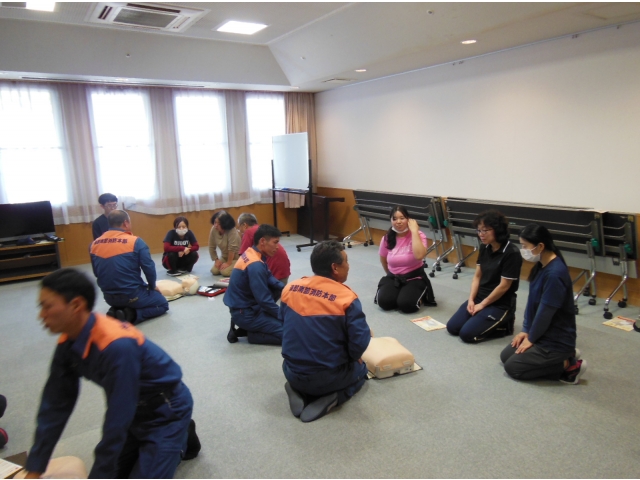 去る10月13日愛厚弥富の里では、海部南部消防署の皆様のご協力のもと、職場研修の一環としてAEDの取り扱いをメインとした救急救命講習会を開催しました。