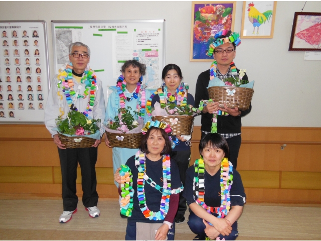 3月30日にお別れ会を行いました。転退職する職員からの挨拶のあと、ハイドロカルチャーと手作りのレイをプレゼント。今までありがとうございました(*^o^*)