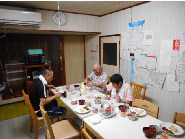 昨日(8月6日)の夕方、突然ですが、第2ケアホームにお邪魔しました。食堂では、利用者の方と世話人さんがお見えになりました。