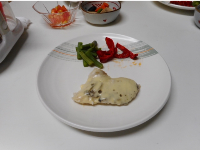 〇鱈のチーズ焼き(パプリカ、インゲン添え)