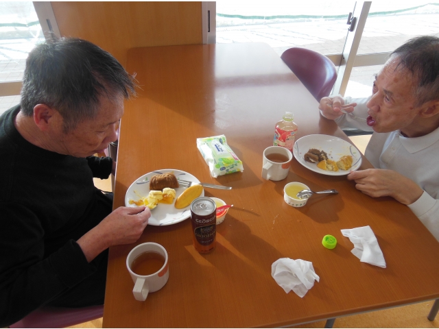 先日11月8日におやつバイキングを開催しました。開始前から「バイキング楽しみ」との声があちらこちらから聞かれ、待ちきれない様子。バイキングではケーキやワッフルなどのおやつと飲み物を自分で取り、皆さん美味しそうに召し上がっている姿が印象的でした。次回はどんなおやつかな?お楽しみに! 生活支援班