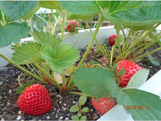 17:00 利用者様と一緒に外にゴミ捨てに行く途中、第1活動班の園芸班が作ったプランターにきれいなお花と真っ赤ないちごが実っていました。花を見ると心が癒されますね。 生活支援班