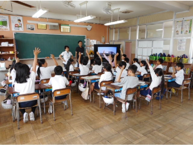 今回も昨年に引き続いて5年生の子供たちに会いに行ったのですが、みなさんとても元気いっぱいです!小学生らしいと思っていたら、飛び込んでくる質問は大人顔負けです。
