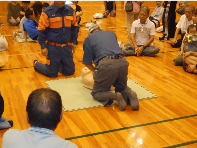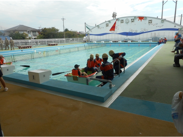 土のうの積み方を学び、実際に救助ボートに乗ってみたり、心臓マッサージをしたりと盛り沢山の内容でした。