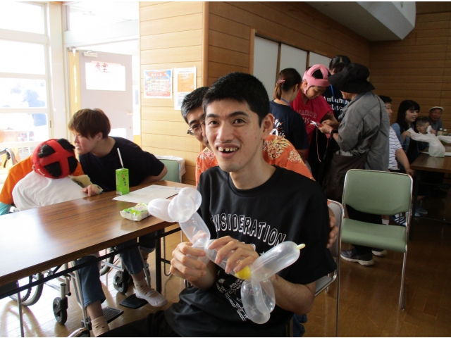 会場ではカレー、焼きそば、フルーツポンチ等の模擬店やバルーンアート、太鼓やバンド演奏、カラオケ等のイベントで大いに盛り上がっておりました!また当日は多くの方々が来所して頂き、利用者さんとの会話に花を咲かせていました。