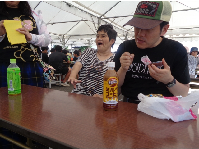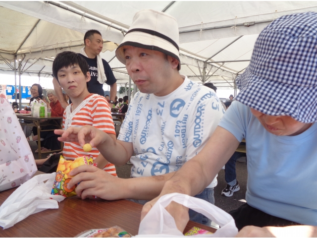 10月6日(日)利用者の方々と一緒に半田の里まつりに行ってきました。風は強かったけど、天気にも恵まれバスの中では、音楽に合わせて楽しそうに歌っていたり、野外ライブも盛り上がっていました。お菓子の掴み取りも挑戦していっぱいお菓子も取れて満足そうにされていました。ごはんも職員と買いに行き、おいしそうに食べられていました。 生活支援班