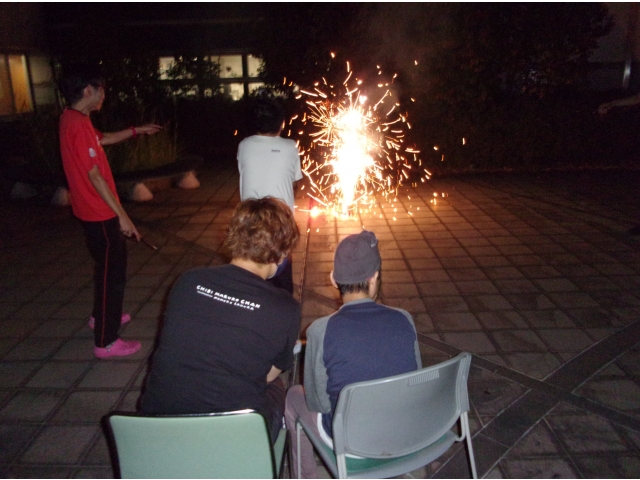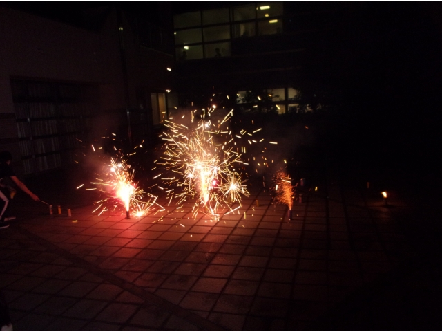 安全のため、線香花火などは職員付き添いで、打ち上げ花火は職員が点火しました。男性職員で複数個の打ち上げ花火を同時に付けた際はプチテーマパークのような華やかさが宙を彩りました。が!やりすぎはご注意を(~_~)