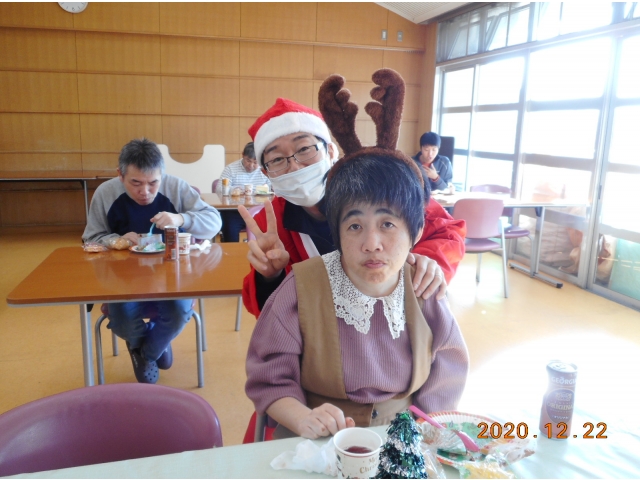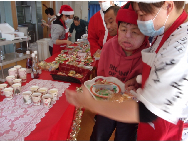 職員・利用者の皆さんもクリスマスの衣装に身を包み、気持ちも準備万端!