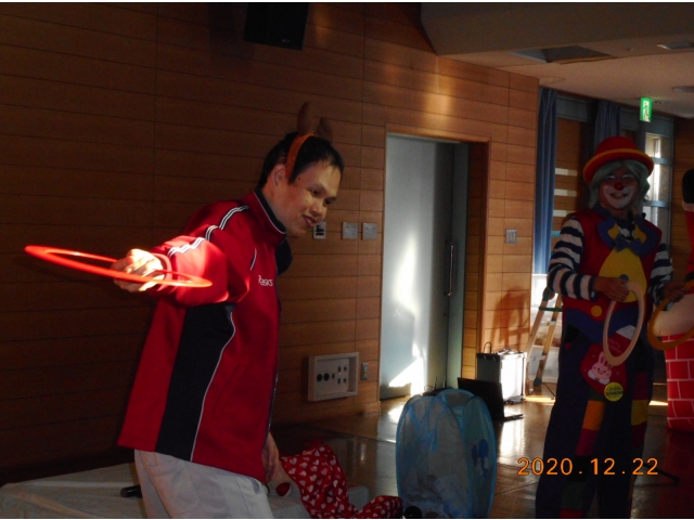 また後半は秋まつりでお馴染みの、あのクラウンがサンタおじさんとして再登場! クリスマス会終了後は何人もがもらった風船を手に持ち、満足げな表情を見せられていたのが印象的でした。