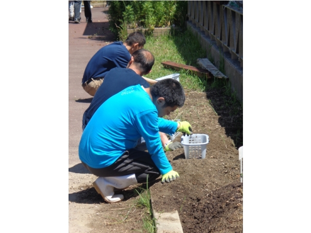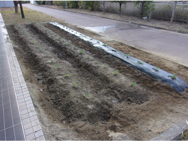 園芸班ではまず小石や草を取り除き、土に肥料を混ぜて土壌をつくり、野菜の種まきや苗の植え付けをし、毎日の水やりや草取り等をして収穫を迎えています。今の時期はスナップエンドウ、人参、大根、キャベツ、玉葱、ジャガイモ、イチゴがすくすく育っております。今後はきゅうりに茄子、ピーマンがひかえております。