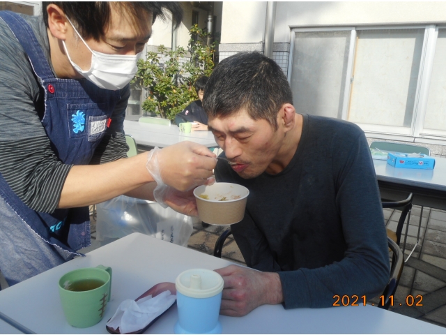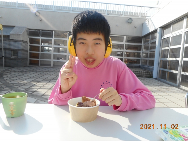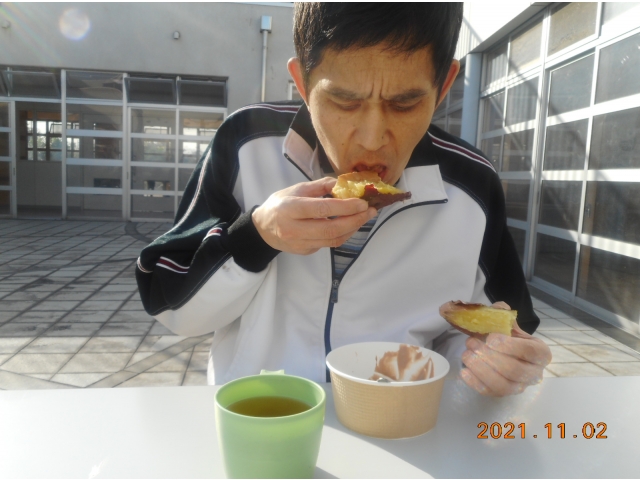 お楽しみ行事である焼き芋を行いました!すっかり寒くなってきたのであたたかいお芋がほかほかでおいしい!冷たいアイスと一緒に食べたらみんな「おいしい、おいしい」ともぐもぐ食べられていました。身体もあったかくなって焼き芋イベント大成功です!また来年も開催できるといいですね。