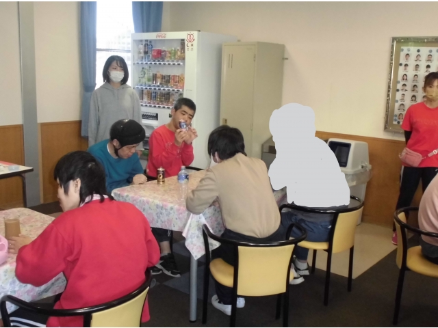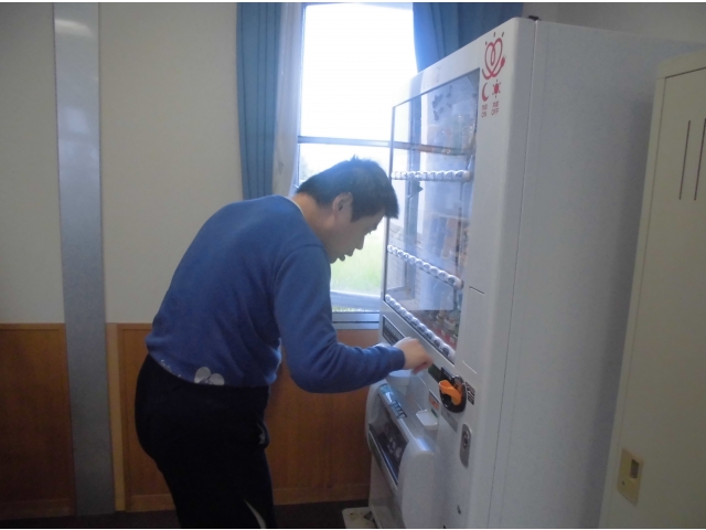 毎週木曜午後はレクリエーション活動の後、当施設設置の飲料自動販売機で缶コーヒー類を召し上がっていただいております。 職員から専用硬貨を利用者様にお渡しし、ご自身で飲料を選択していただいたおります。 その際、毎回決まった飲料をすぐに選ばれる方、少し長考される方、悩まれる方、その日のご気分やご嗜好などが凝縮された時間となっております。