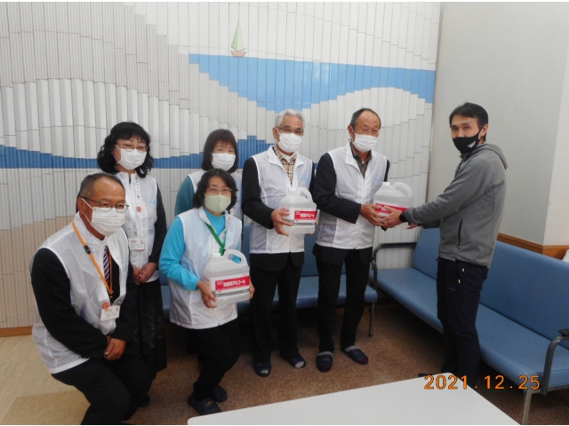 12月25日(土)クリスマスにサンタさんに代わり弥富市南地区民生児童委員の伊藤様始め7名の皆様が来所していただき、消毒液のご寄付をいただきました。大切に使わせていただきます。皆様とは今後も様々な面で連携していきたいと思っております。ありがとうございました。