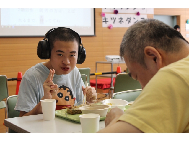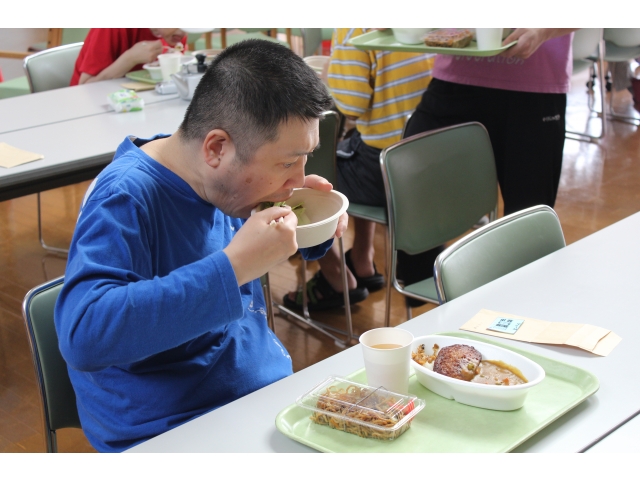 今日は、楽しみにしていた秋まつり♪皆さん朝から「今日は秋祭りだね。」とウキウキされていました。 午前は、開会式と楽しみなご飯と模擬店です。カレーライス、焼きそば、フランクフルト、アイスクリーム★皆さんのとても良い表情が見られて嬉しかったです☆