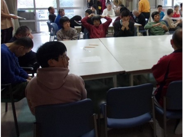 1月8日、今年最初の利用者懇談会が開かれました! 喫茶たんぽぽでおやつを食べてエネルギー補給した後だったのでみなさん元気いっぱいに参加することができました(*^▽^*)今日は2月の日曜余暇バスドライブ、グランド・集会室で運動などの中でどれに参加したいかを決めました。最後には来月の司会者を決めるのですが立候補される利用者さんが多かったのでじゃんけんで決めました~!司会者さん来月よろしくお願いします~~!