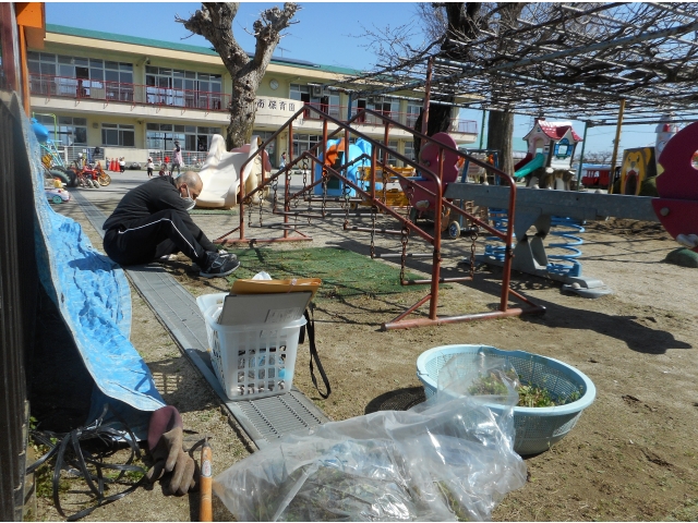 今年度から立南保育園様での草取りを請け負っています。週1回1時間程度、交代で草取りに行きます。時々、園児が寄ってきて「ありがとう」と言って去っていき、元気をもらっています。これからどんどん草が伸びてくるので活躍しなければなりません。少しでもお役に立てるように頑張ります。
