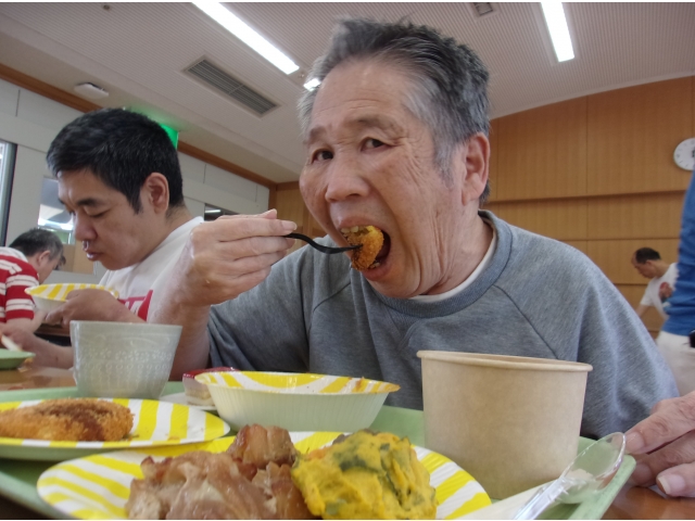先日、昼食バイキングがありました。バイキングのメニューは鶏肉の照り焼きやケーキなどが出ました。いつもより豪華なご飯に利用者さんは目を輝かせ、おかわり!と声を挙げ美味しそうに召し上がっていました!