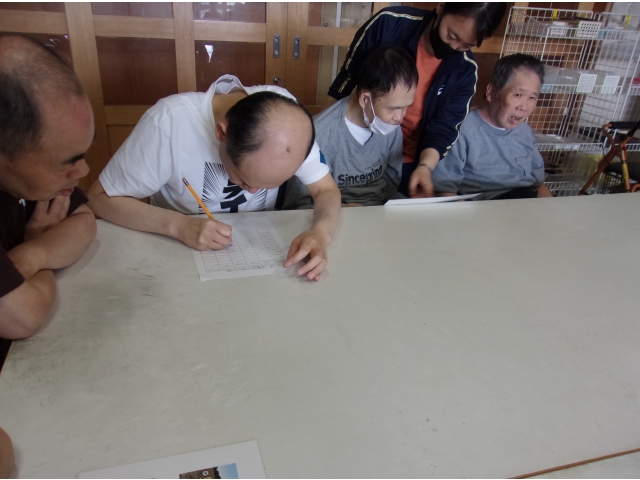 午後から利用者懇談会を行いました。今月のテーマ「給食の献立、食事満足度調査についての話」でした。皆さんの楽しみの1つである食事に関する話という事で皆さん真剣に職員の話に耳を傾けていました。懇談会終盤には来月の日曜日の余暇活動の希望を記入してもらいました。「来月どの活動に参加しようかな?」と悩みながら記入されていました。