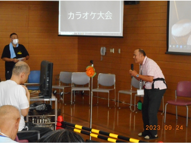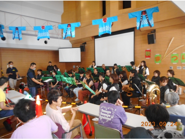 午後の部 午後からはイベントの時間です。まずは利用者さんによるカラオケ大会です。数ヶ月前から練習を重ねてきました。参加された皆さん上手く歌われていました。その後木曽岬櫻華太鼓様による演奏、ヤトミウインドアンサンブル様による演奏と続きました。終盤にはクイズ大会やビンゴ大会も行われました。来年もご家族様に参加して頂ける事を願いながら感染予防対策に努めていきたいと思います。