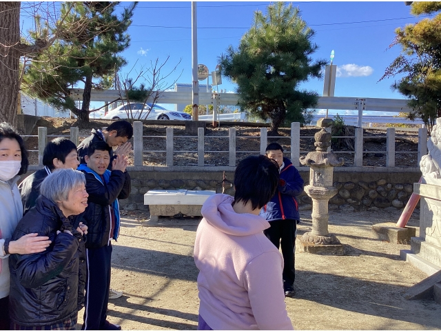 1月4日に富島神社に初詣に行ってきました。風が冷たく肌寒い感じでしたが、青空でとてもいい天気でした。神社につくとみんな真剣に手を合わせていました。今年は何をお祈りしたのかな?みんな今年も元気に過ごせますように。