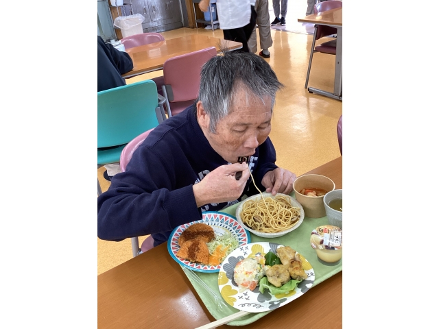 昼食バイキングが行われたくさん食べました。メニューはタンドリーチキン、ポテトサラダ、ミネストローネ、和風パスタ、コーンコロッケ、プリンでした。タンドリーチキン、ポテトサラダが特に美味しかったようでみんなお腹いっぱいになったようです。