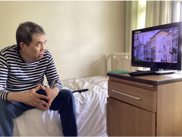 お昼ごはんの後でお部屋で好きな旅番組をみて楽しまれていました。