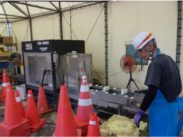 本日の当番利用者の方も、慣れた手つきでコーンをブラシで磨いたり、洗浄した後のコーンを持ち上げたりされていました。