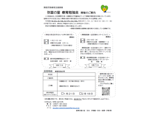 *メールでのお申込みはこちら soudan-yatominosato@ai-kou.or.jp ①お名前、②ご連絡先、③ご所属(お子様の学校や学年/事業所名など)、④参加ご希望日 をお知らせください。