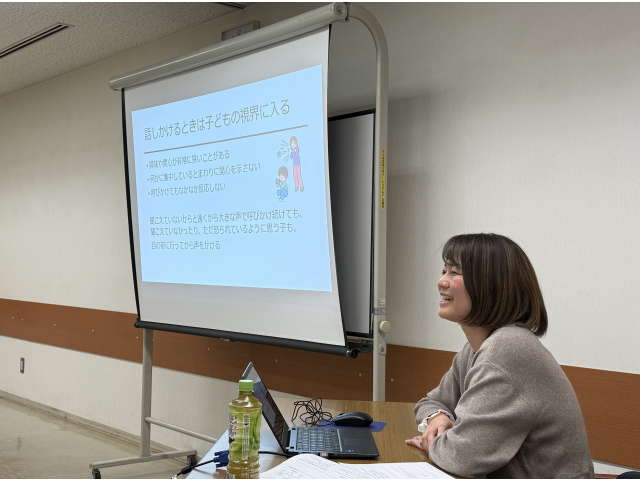 「特性のあるお子さんへの声のかけ方」というテーマで、愛知県医療療育総合センター 池田詠衣子様をお招きし、ご講演いただきました。