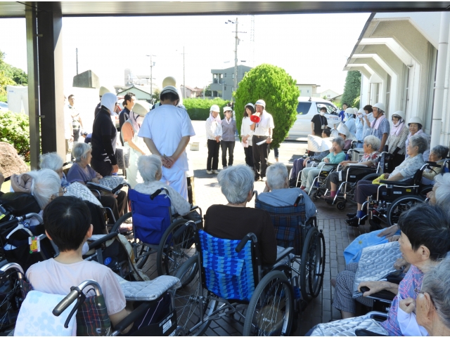 苑の外をぐるりと回りながら、避難誘導訓練を行いました。