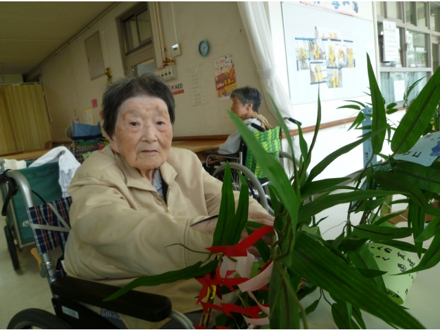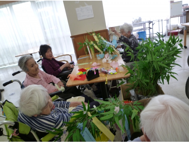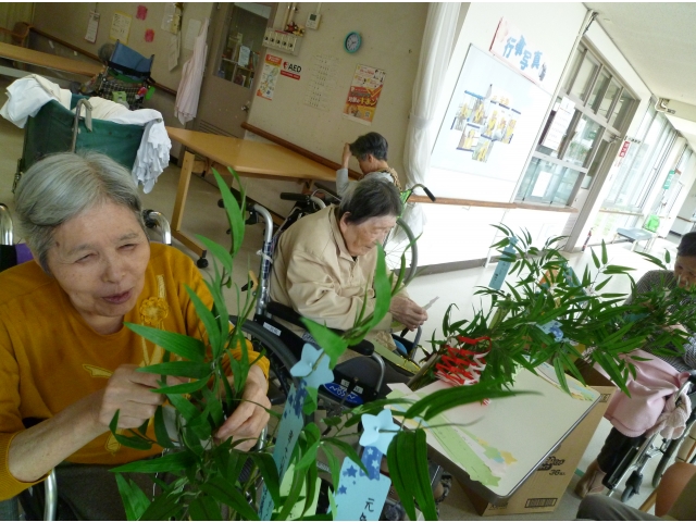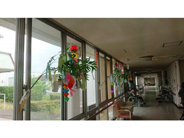 6月下旬に利用者の皆さんとともに飾り付けた笹飾りは、昨年に引き続き利用者様の往来の多い廊下に設置しました。