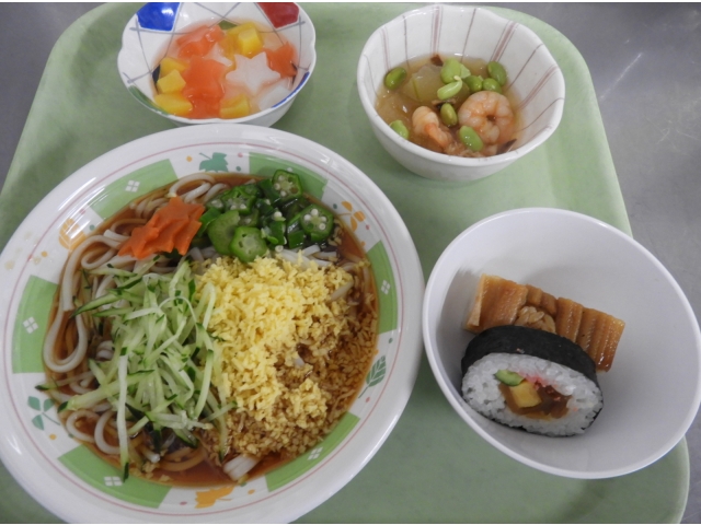 一方、七夕メニューの第一弾として、7/2の昼食に「七夕そうめん」を提供しました。