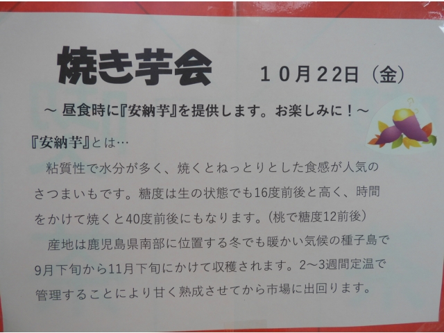 一宮苑恒例の『焼き芋会』ではねっとり甘~い安納芋をいただきます。