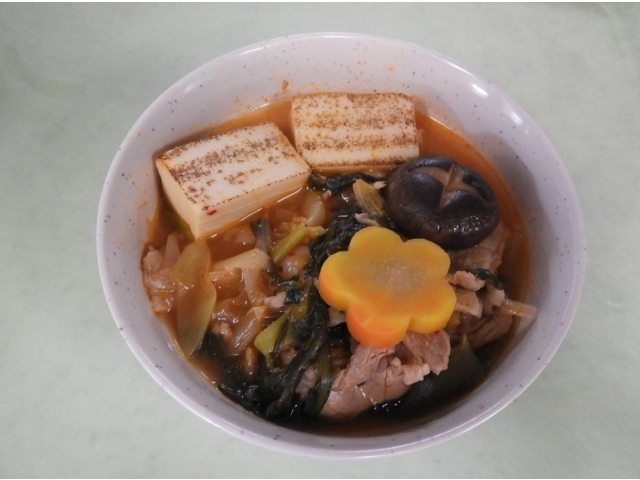 豚キムチ鍋風やさしいピリ辛味のキムチ鍋は身も心もポカポカです。Bを選んだ方‥‥‥