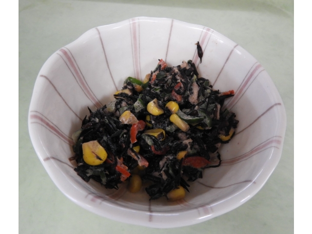 彩り豊かなひじきサラダと共にいただきました。本日もごちそうさまでした。