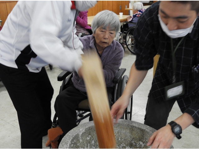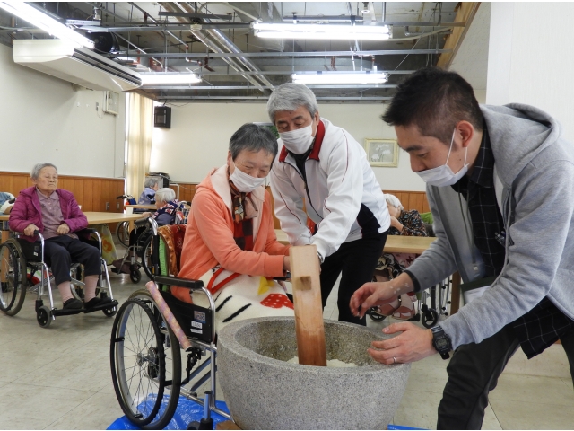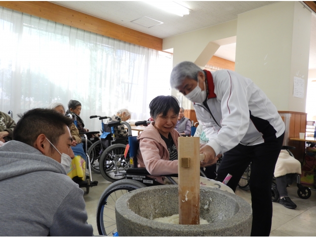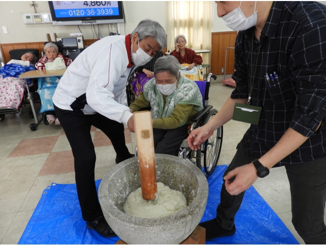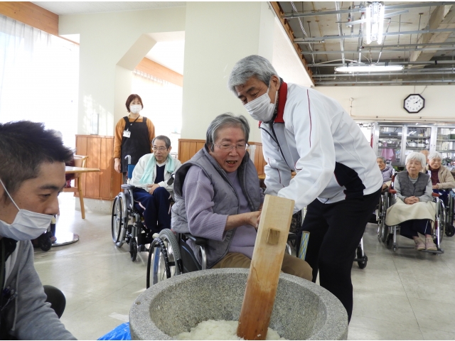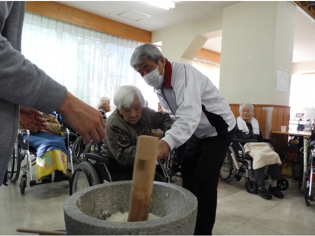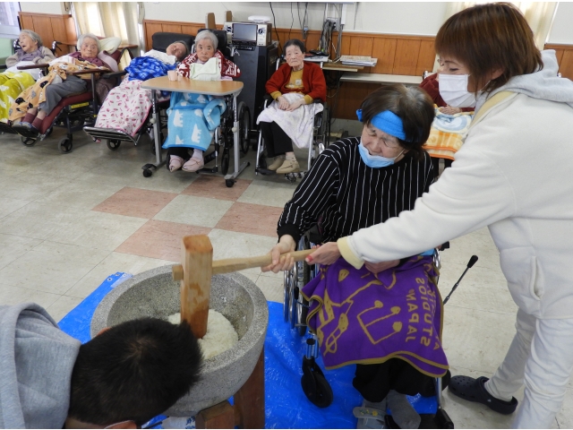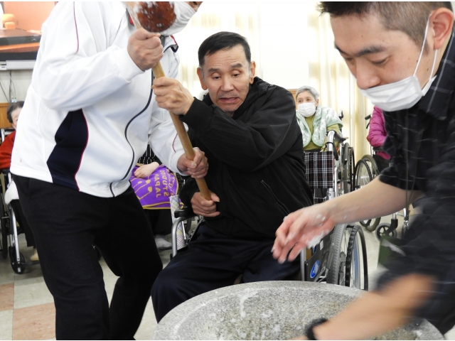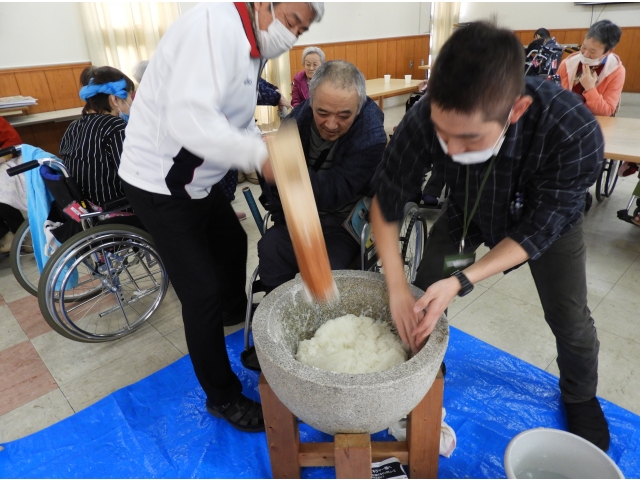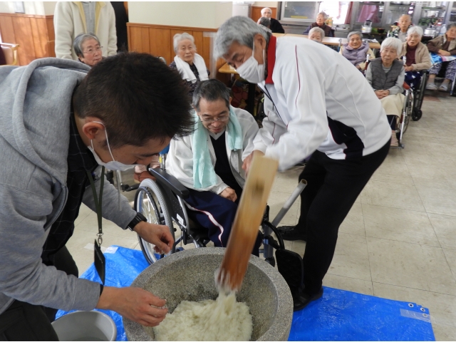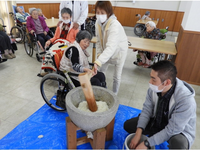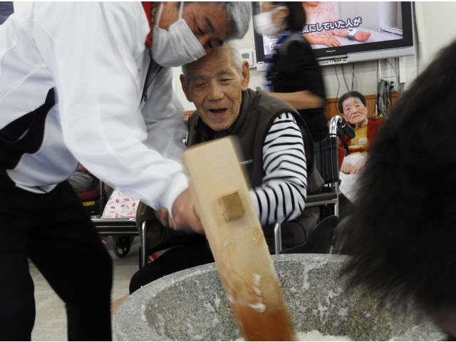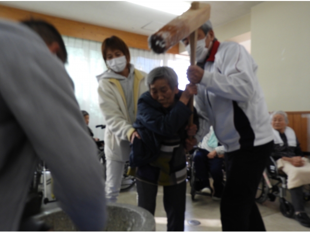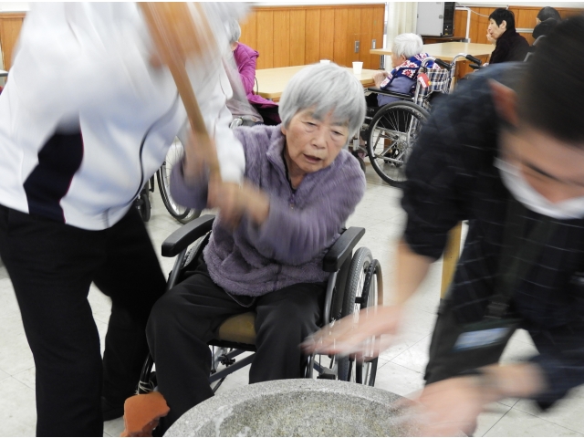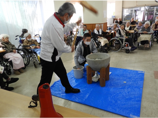 最後は職員2名による高速餅つきを披露して餅つき会は盛況のうちに終了しました。