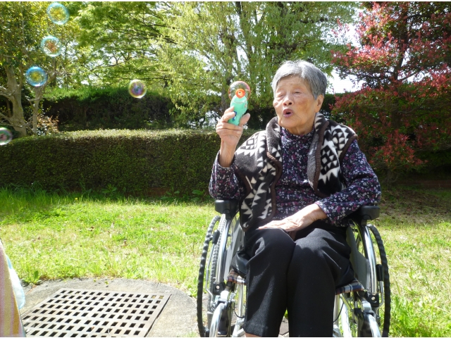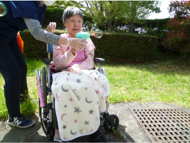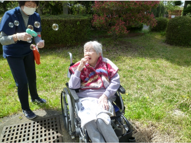 自動シャボン玉機を使って、ひと時童心に戻り、楽しんでいらっしゃいました。しかし、シャボン玉というのは、飛ばす人も見ている人も皆笑顔になりますね。不思議なものです。
