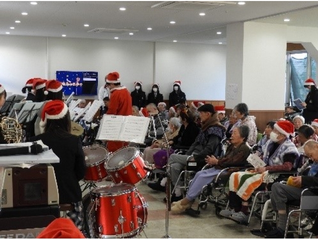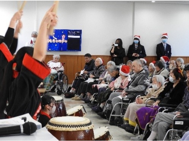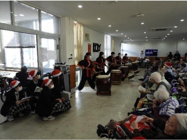 そして午後からは、修文学院高等学校の皆さんの慰問があり、利用者の皆さんに和太鼓、演劇、吹奏楽を披露して頂きました。実に4年ぶり?の訪問です。