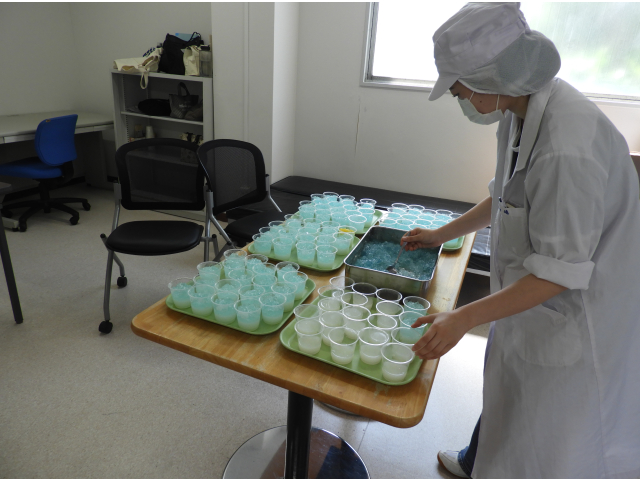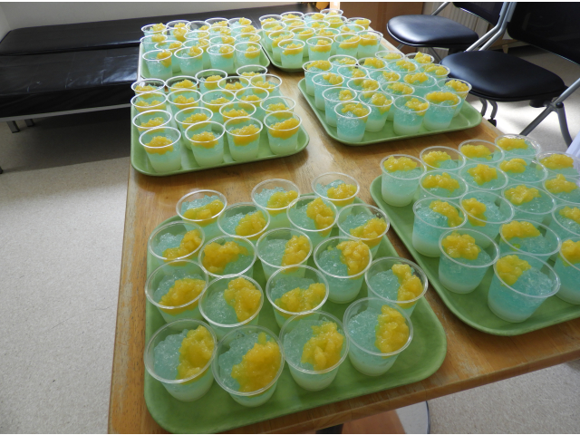 おやつに管理栄養士の実習生さんが作ったゼリーを食べました。