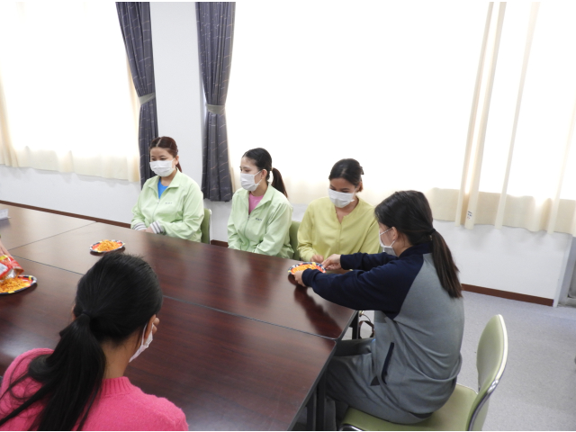 最初に技能実習生を受け入れて2年以上経過しましたがみなさん大変一生懸命で日本語も業務の質も上達しています。目標とする姿が見えてきたかと思います。先輩と交流するよい機会になりましたね。