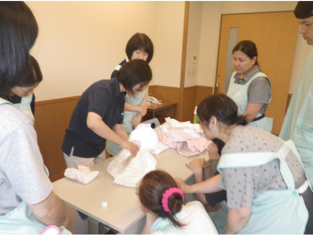 今日は施設内で、テーナアドバイザーの方をお招きして、 講習会を、介護職員で受けました。 利用者の方に、気持ちよく過ごしてもらう為には、 どこに注意を払うべきかという視点での説明は、 わかりやすく、すぐに役立つ内容でした。 この講習を利用者の為に、役立てて行こうとの声に、 介護職員みなが、頷いておりました。