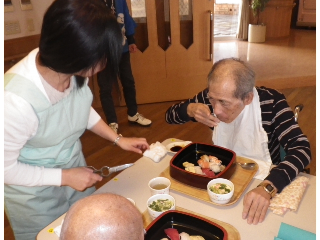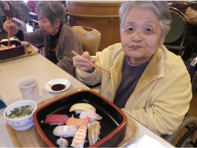 - いつもは介助が必要な人も手づかみでペロリ(8分音符)