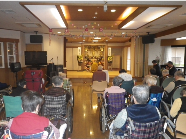 本日小牧苑では春の彼岸法要が行われました。 龍洞院の和尚様をお招きし、読経と焼香ののち、和尚様の説法をいただきました。 「お彼岸の本当の意味は、生きとし生けるものすべてに感謝するということなんです。」というお話に、利用者はじめ職員一同聞き入っておりました。