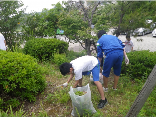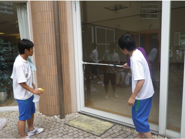 沢山の生徒さんがみえ、草刈りや窓拭き等